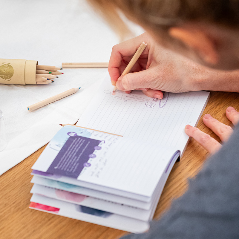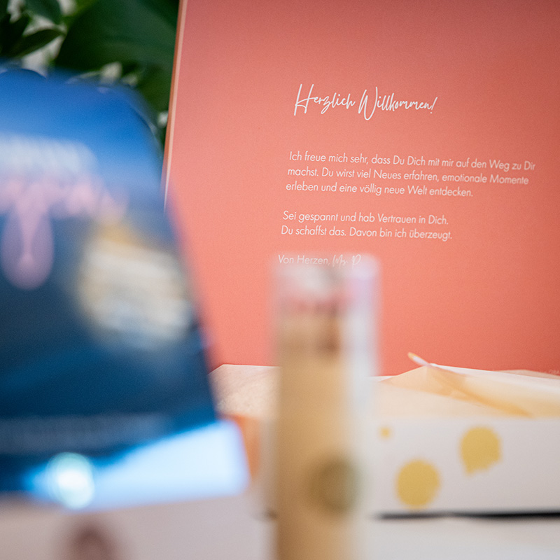 1 Workbook (128 Seiten) mit weiteren Hintergrundinformationen zu Bewusstsein, systemischen Methoden u.v.m. und viel Platz für deine Emotionen, Erkenntnisse und Notizen.