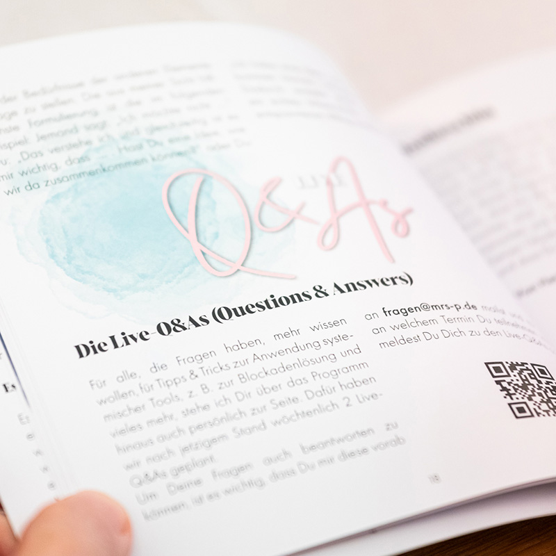 Die Live-Q&A´s sind Webinarveranstaltungen, in denen die Autorin selbst Fragen zum Programm und zu weiteren systemischen Methoden beantwortet. Diese finden voraussichtlich zweimal wöchentlich statt. Mit Kauf des Programms wird erhältst du sofortige Berechtigung zu den Live-Q&A´s.