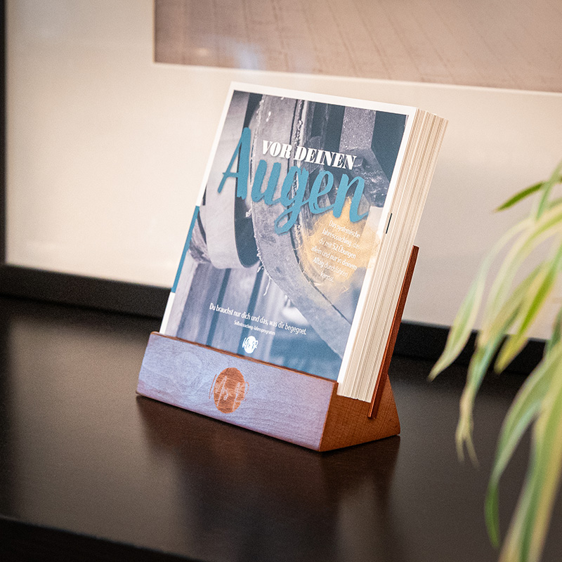 „Vor Deinen Augen“ enthält superschöne Fotos mit ganz starken Sprüchen. Durch die einfachen Beispiele weiß man sofort, wie man an die Übung rangehen kann. Echt Klasse.